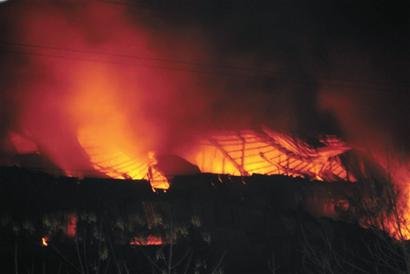 胶州湾工业园内一家具厂起大火了 众多消防车正在现场扑救昨天凌晨4时许,胶州市胶州湾工业园内一家具厂存放家具的仓库突发火灾。事故发生后,胶州市消防大队紧急调派了30余辆消防车赶赴现场扑救。事故现场火光冲天 “胶州...