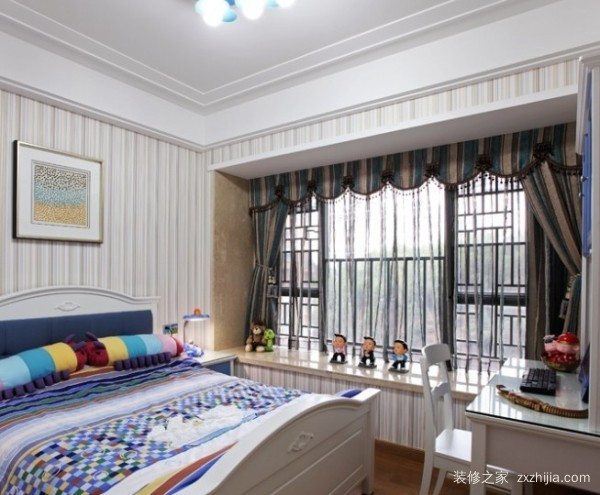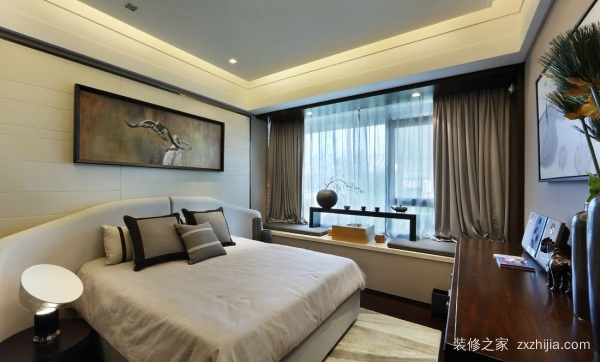 3、 卧室凸窗窗帘也很重要,窗帘的颜色我们需要根据整个家居装饰风格和颜色搭配,个人建议无论你的装饰风格窗帘颜色最好不要太华丽,因为窗帘的作用是保护我们的隐私,所以如果颜色太华丽会导致特别关注,隐私效果也大大降低。