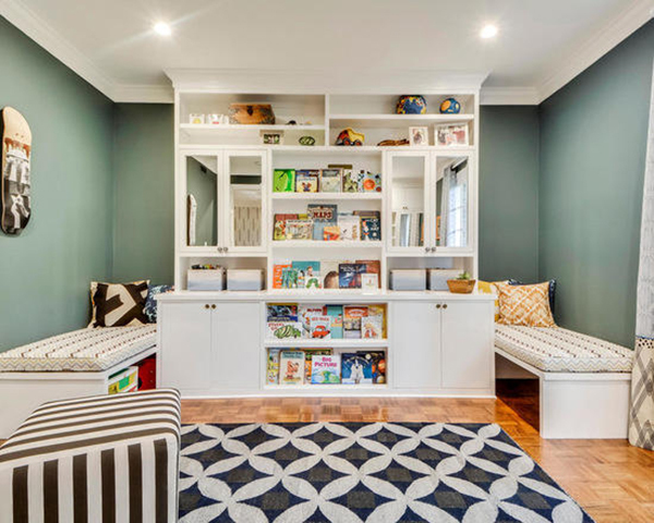 3.为了确保有一个尽可能大的游戏区,家具不不应该太多,应该限于床、桌椅和橱柜来储存玩具和衣服。孩子们喜欢在墙上随意涂鸦,可以在他们的活动区域挂一块白板,这样孩子们就可以有一个可以随意涂鸦的六个组合。这不会损害所有的空间,但也会激发孩子们的发明。儿童的艺术工作或手工作业,可以使用展示板和层板架放置,不仅满足儿童的成就感,而且达到爱好展示的效果。在购买家具时,我们应该考虑多功能和多变的家具。