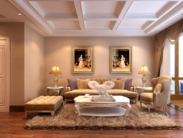 沙发后面用了墙裙装饰来作为背景墙,墙裙不仅美观,还能对墙面起到保护作用,防止沙发移动的时候撞击到墙面。墙裙上面挂了三幅挂画,起到了点睛之笔的作用。所以说别墅豪华...
